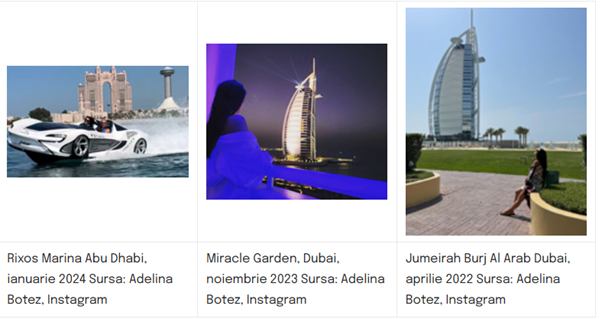 Preocuparea sa chinuitoare pentru plimbările altora prin Dubai este cu atât mai nefirească cu cât și familia Botez este destul de „familiarizată” cu luxul din Emiratele Arabe Unite, după cum rezultă din fotografiile din vacanțele petrecute în Abu Dhabi și Dubai, în ultimii ani.